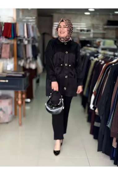 DULE PİKE ETEKLİ TAKIM SİYAH