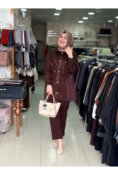 PUREVA CEKET PANTOLON TAKIM KAHVERENGİ