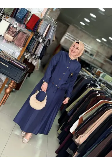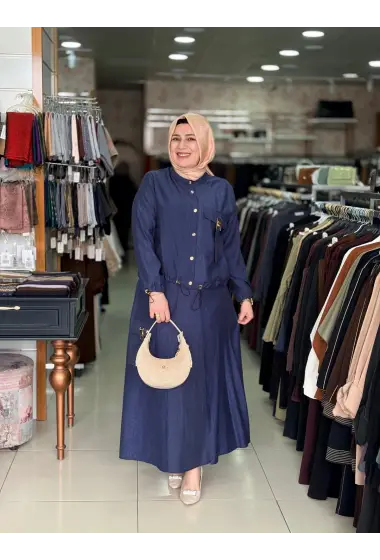 GAZE İPEK CUPRA ELBİSE LACİVERT