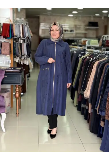 GRİMİSS TAŞ DETAYLI ABAYA LACİVERT
