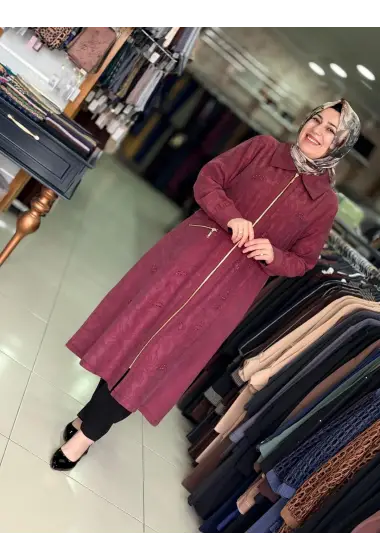 PUREVA DESENLİ CEKET ETEK TAKIM Mürdüm