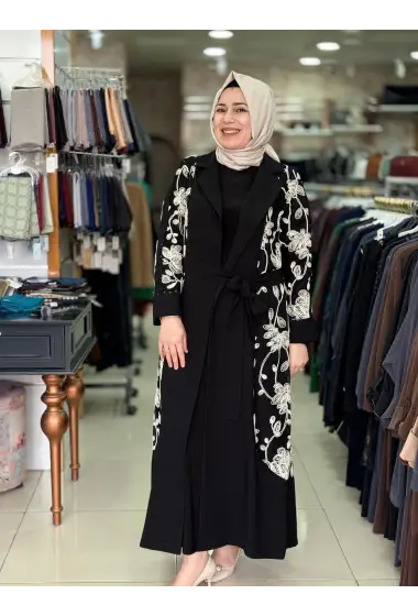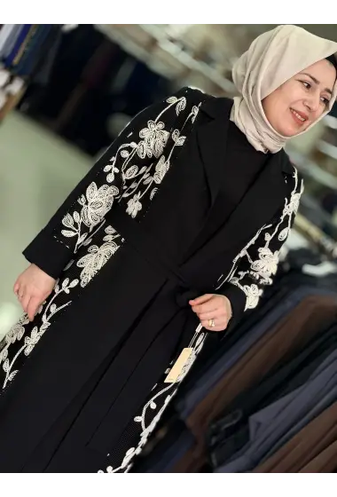 JUKİ ÇİÇEK İŞLEMELİ ABAYA SİYAH