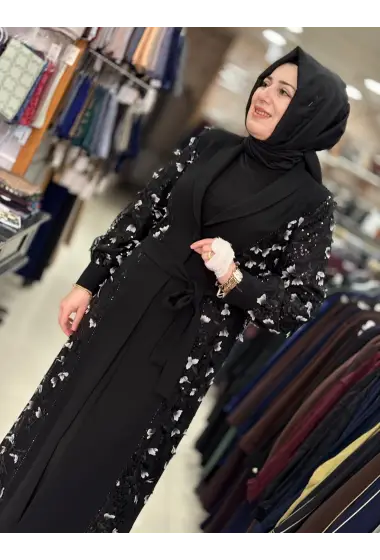 JUKİ KELEBEK DETAYLI ABAYA SİYAH
