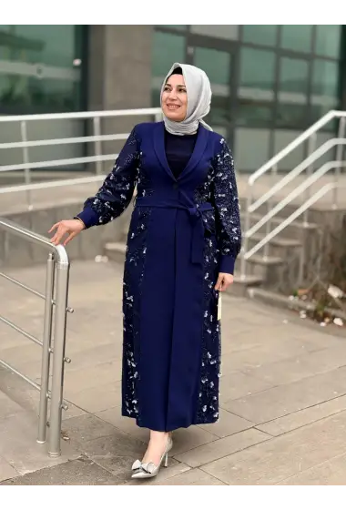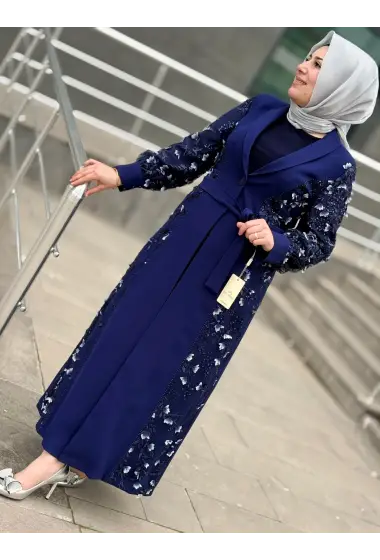 TAŞ DETAYLI ABAYA LACİVERT