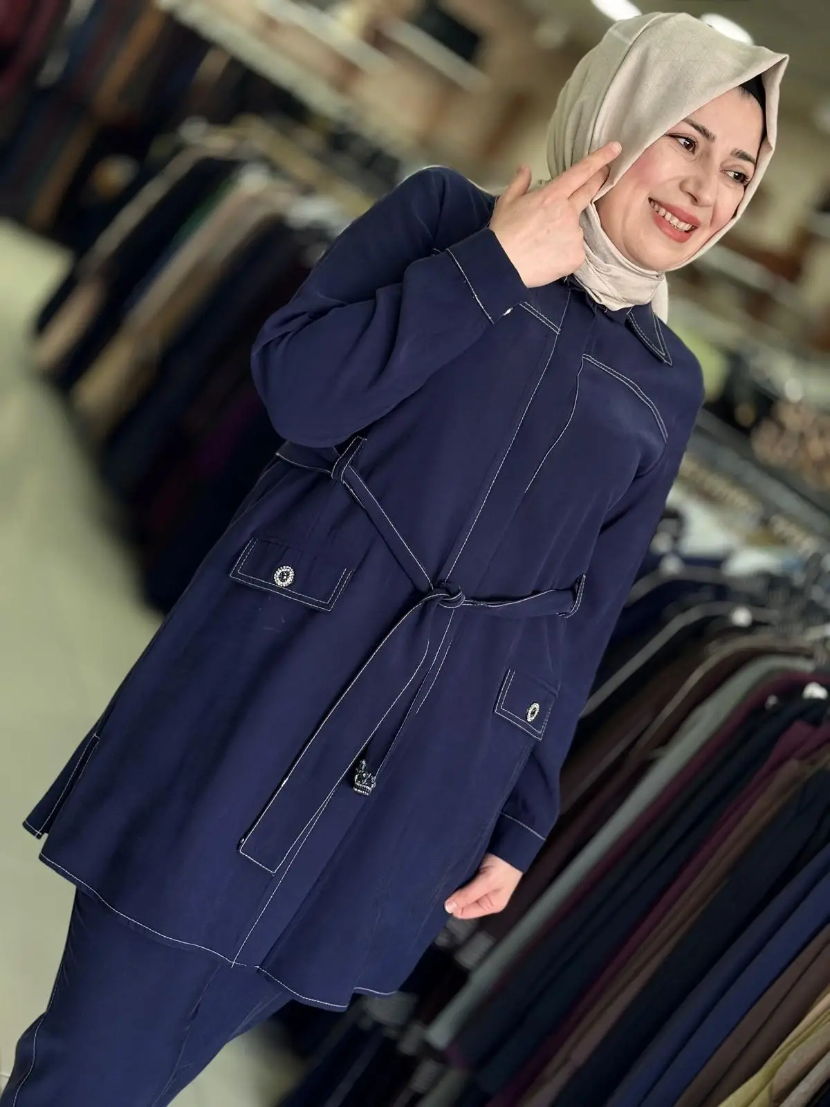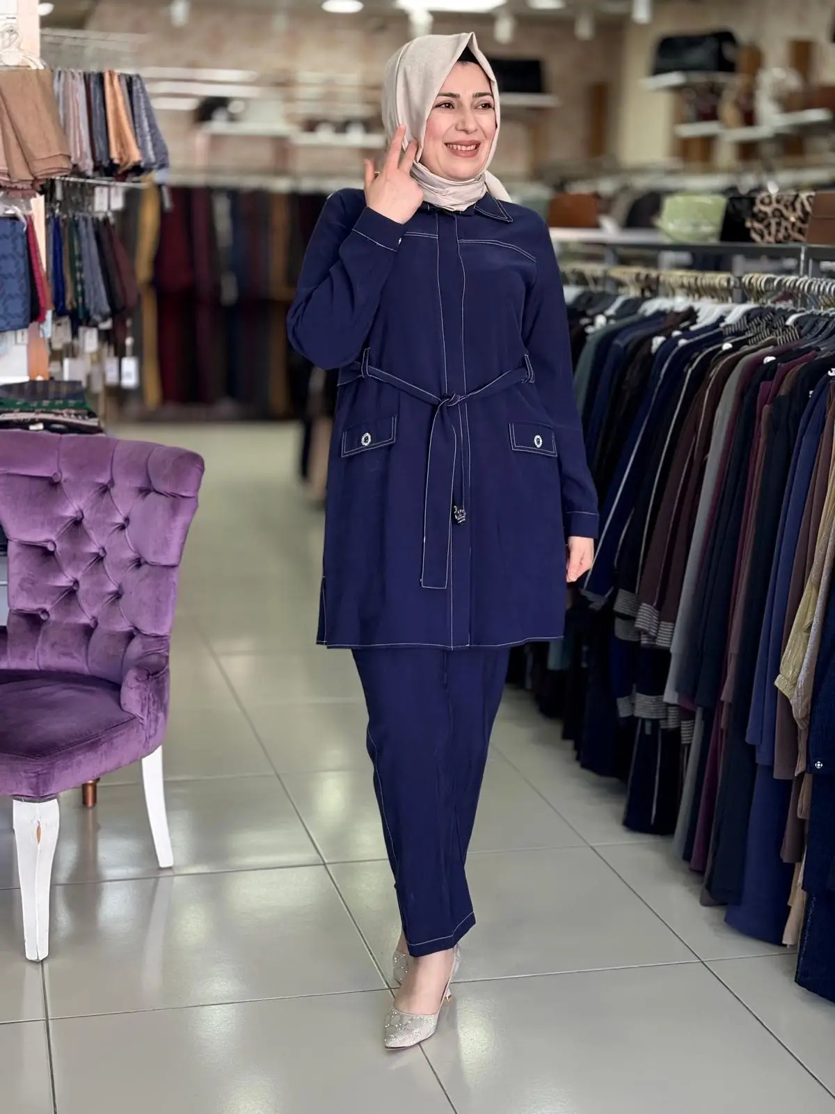 BELEN CEP DETAYLI TAKIM LACİVERT