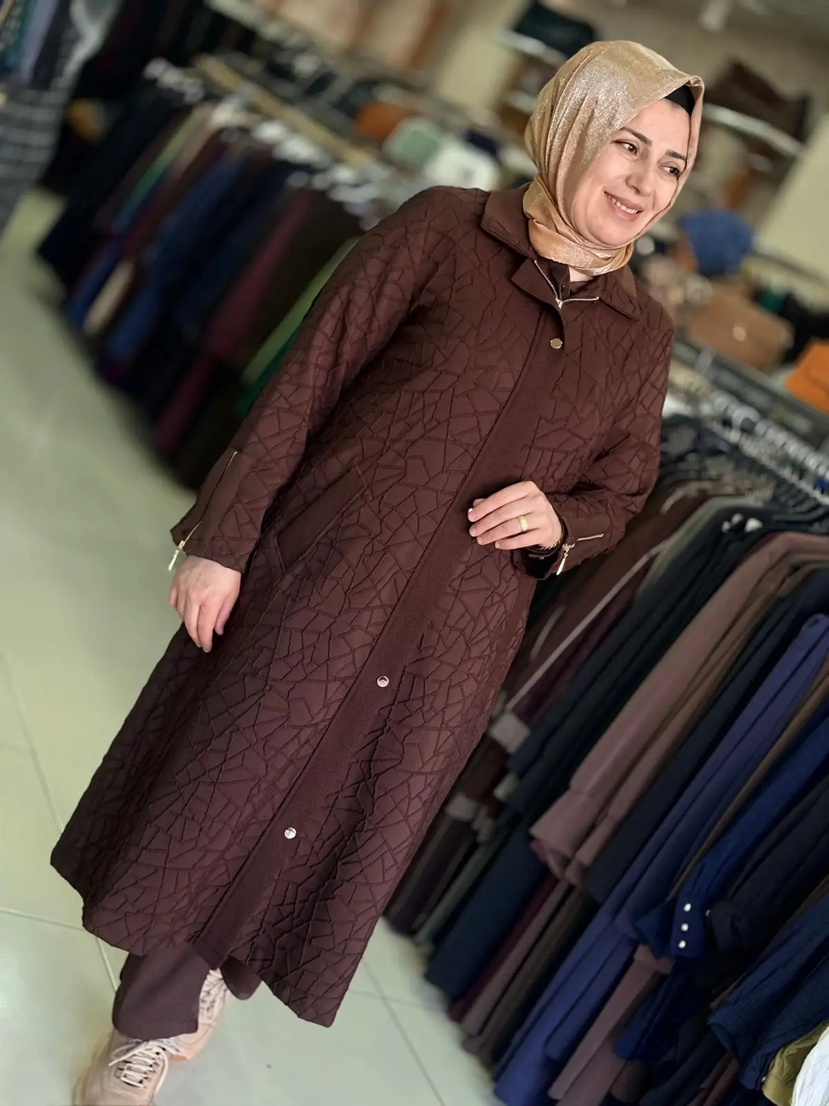 Merihce Tekstil olarak sizlere sunduğumuz BELEN KABARTMA DESENLİ KAP KAHVERENGİ, kaliteli malzemelerden üretilmiş olup, şıklığı ve rahatlığı bir araya getiriyor. Giyim tercihlerinizi tamamlayacak bu özel tasarım, her ortamda zarif bir görünüm sunmanızı sağlar.