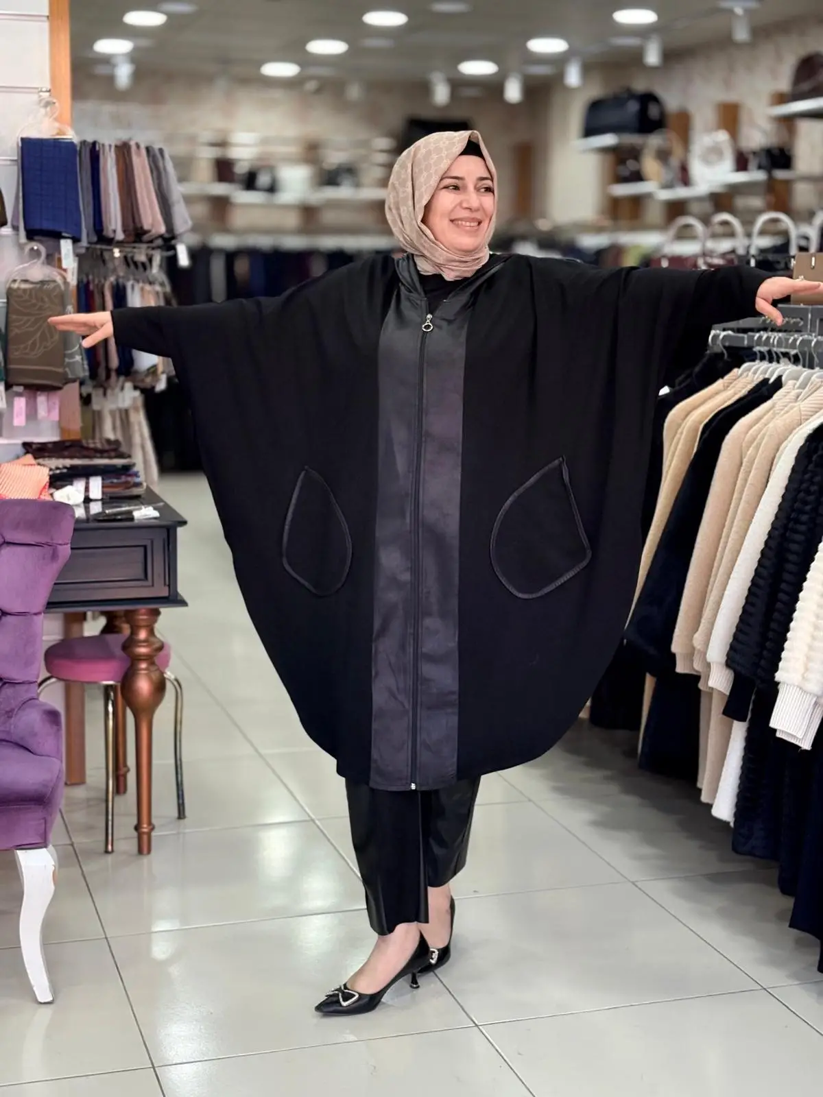 Merihce Tekstil olarak sizlere sunduğumuz DULE PANÇO, kaliteli malzemelerden üretilmiş olup, şıklığı ve rahatlığı bir araya getiriyor. Giyim tercihlerinizi tamamlayacak bu özel tasarım, her ortamda zarif bir görünüm sunmanızı sağlar.