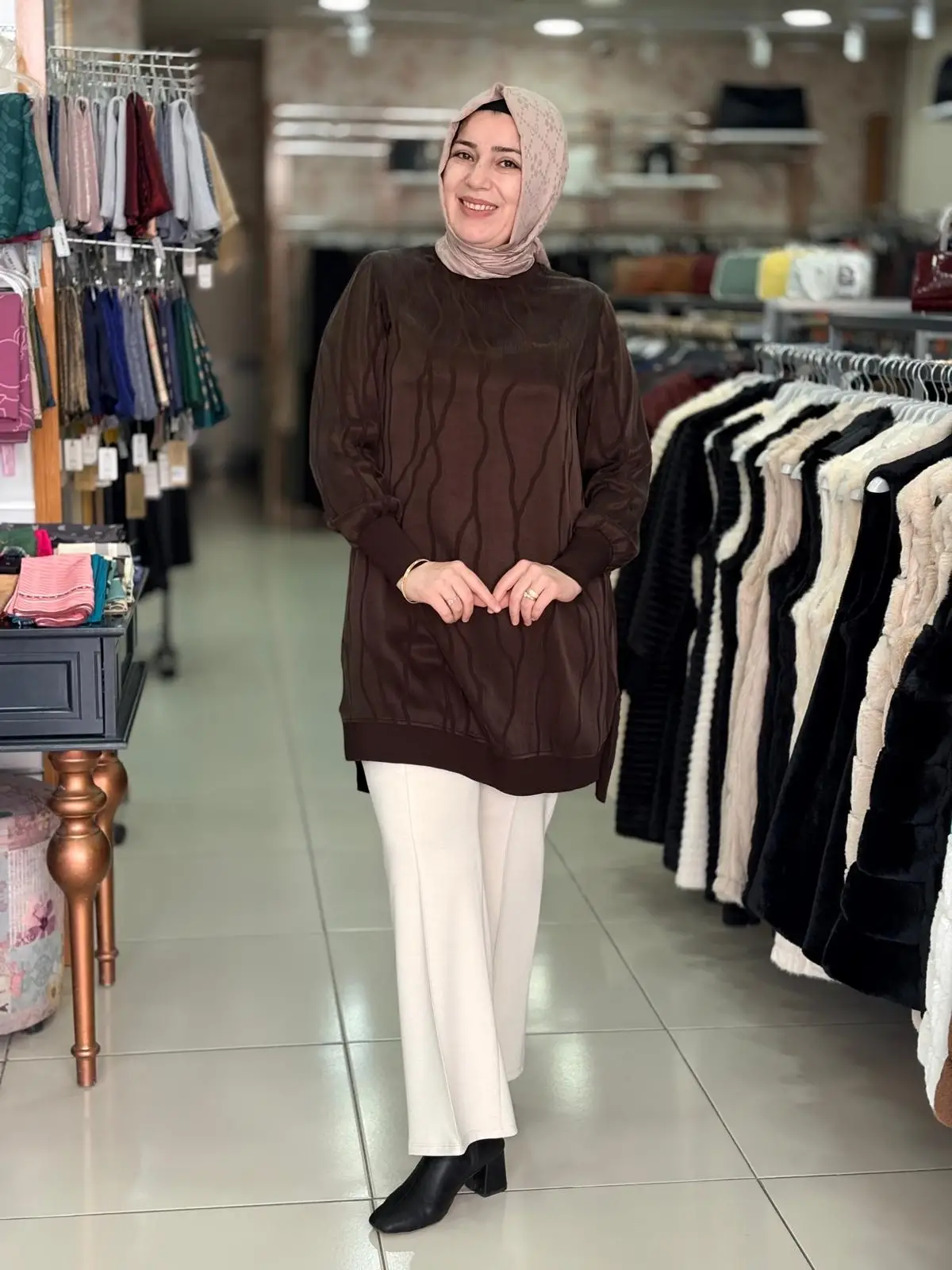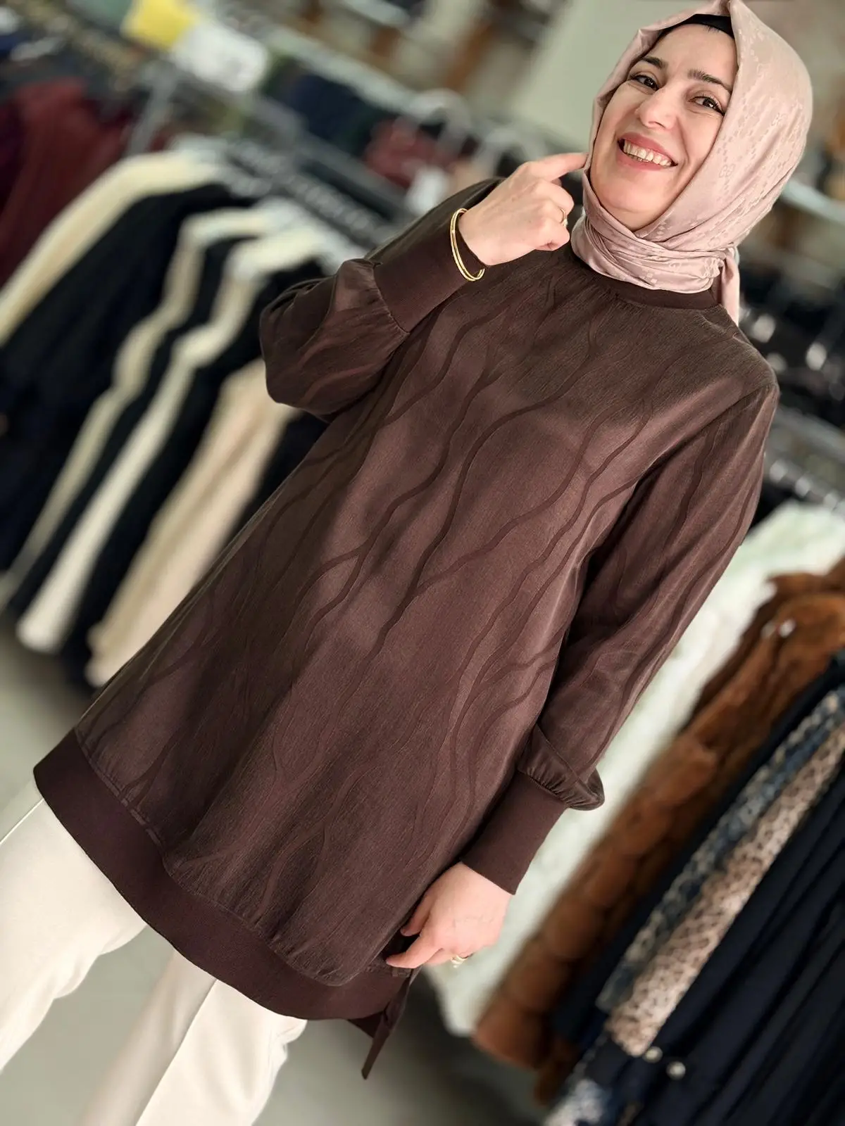Merihce Tekstil olarak sizlere sunduğumuz DALGALI DESEN CUPRA TUNİK KAHVERENGİ, kaliteli malzemelerden üretilmiş olup, şıklığı ve rahatlığı bir araya getiriyor. Giyim tercihlerinizi tamamlayacak bu özel tasarım, her ortamda zarif bir görünüm sunmanızı sağlar.