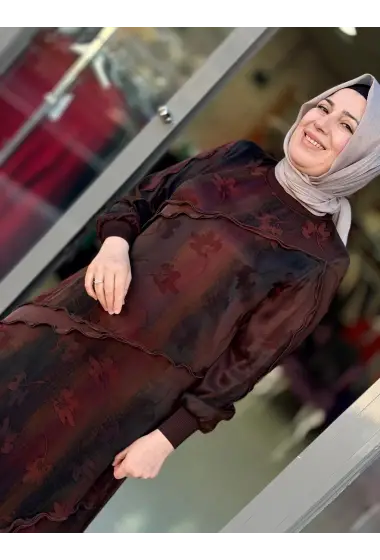 DEFRİNA FIRFIR KUPRO ELBİSE Bordo