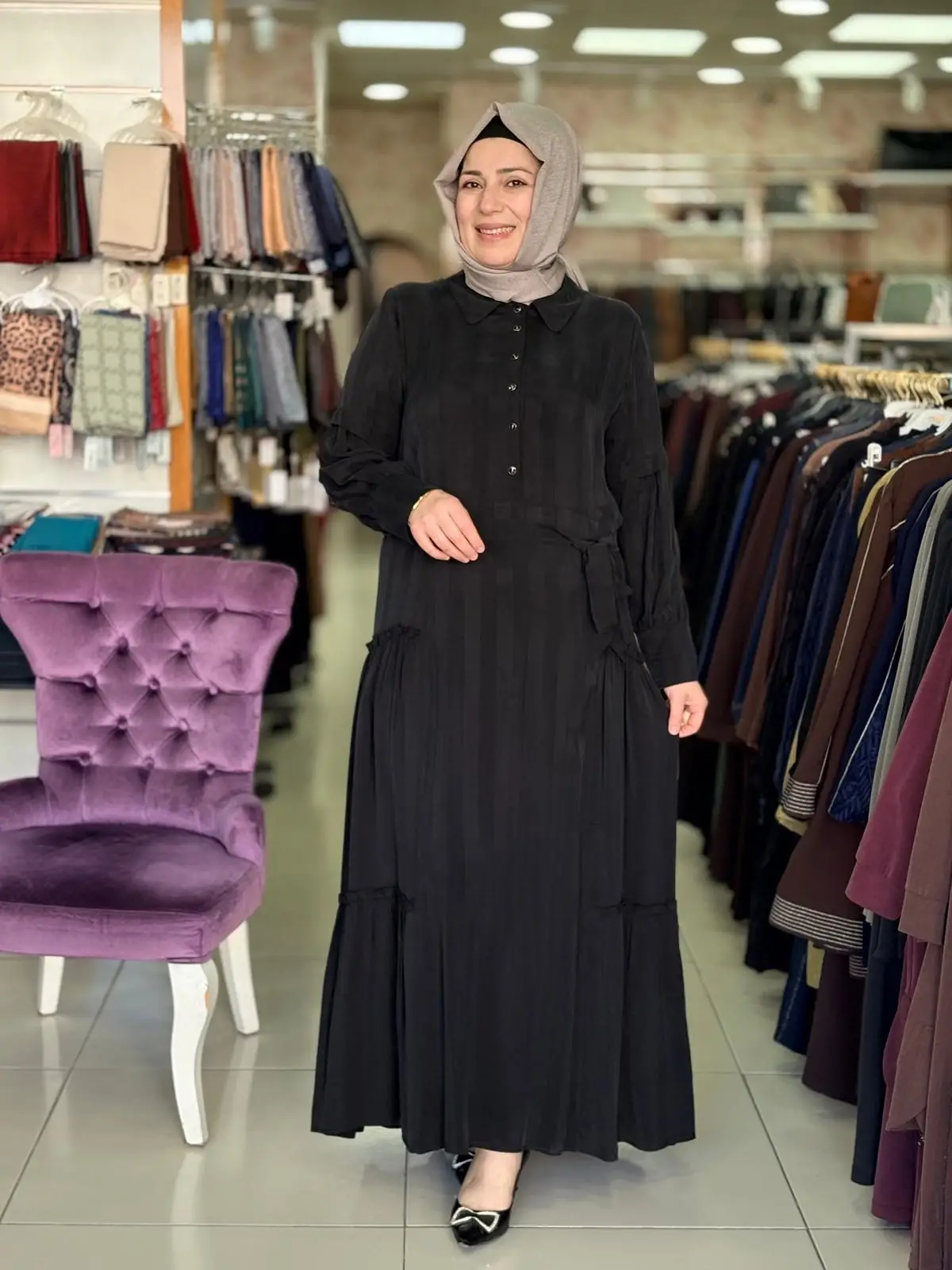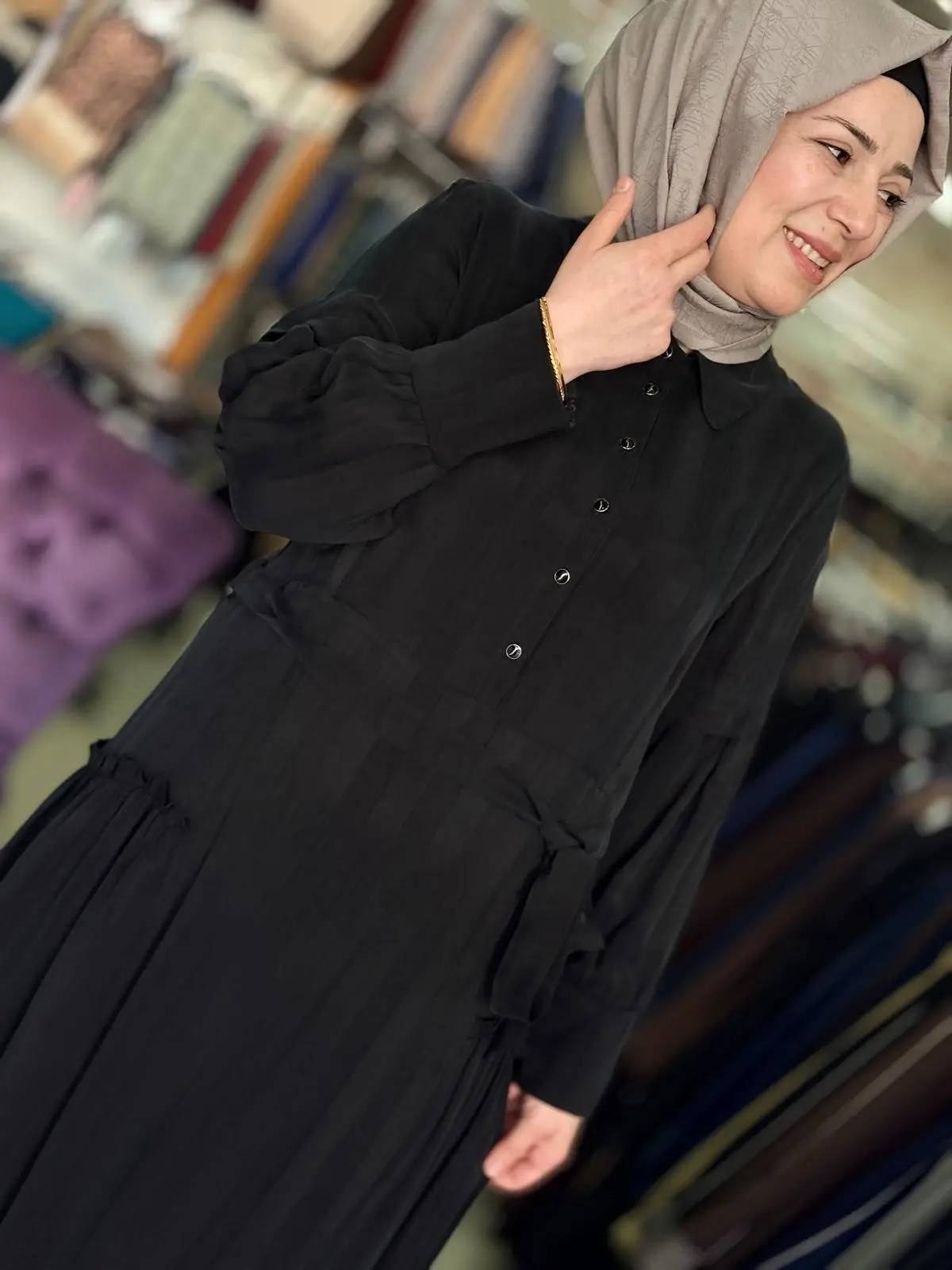 Merihce Tekstil olarak sizlere sunduğumuz DEFRİNA DÜĞMELİ FIRFIRLI CUPRO ELBİSE SİYAH, kaliteli malzemelerden üretilmiş olup, şıklığı ve rahatlığı bir araya getiriyor. Giyim tercihlerinizi tamamlayacak bu özel tasarım, her ortamda zarif bir görünüm sunmanızı sağlar.