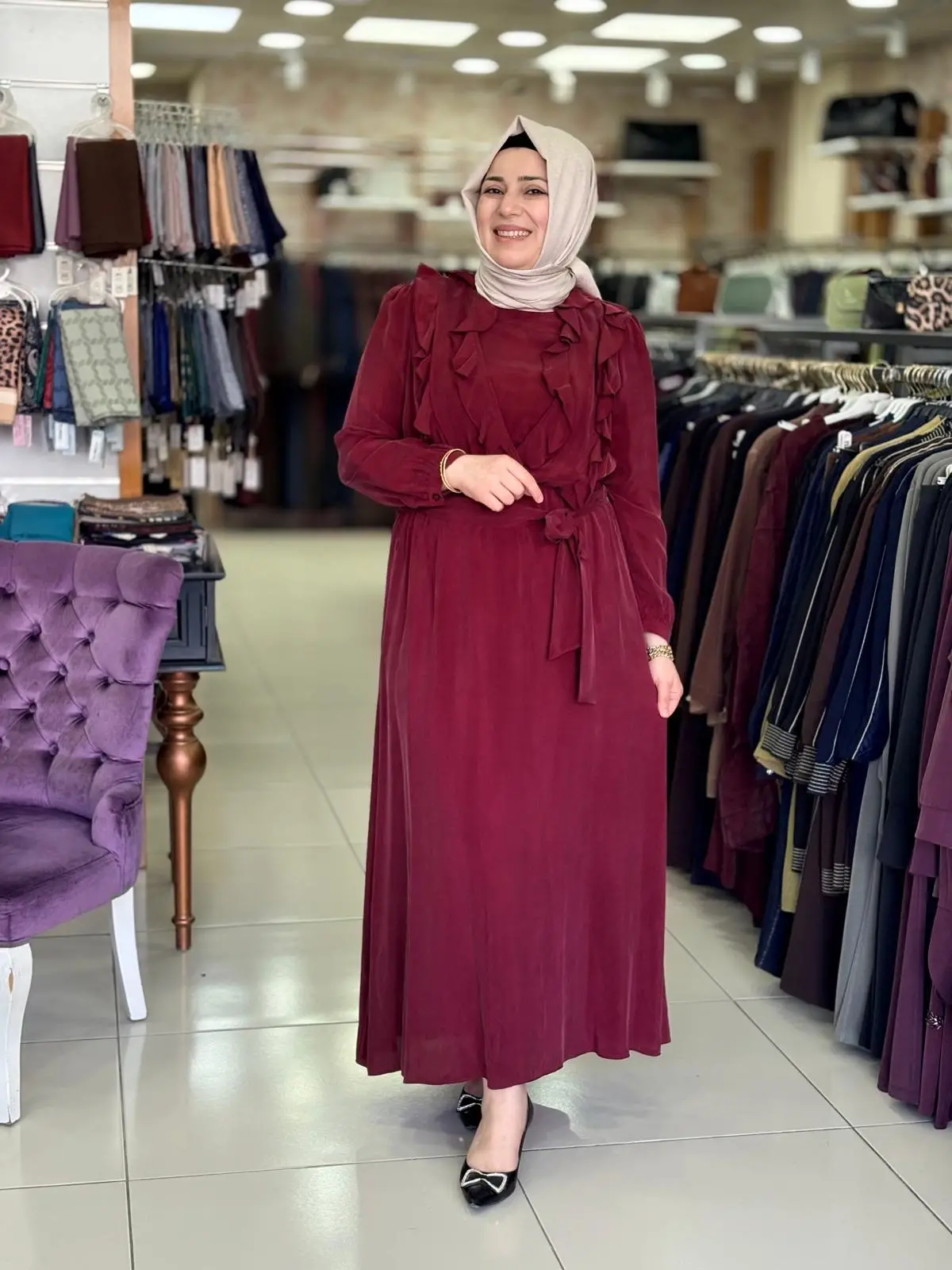 Merihce Tekstil olarak sizlere sunduğumuz DEFRİNA FIRFIR KUPRO ELBİSE Bordo, kaliteli malzemelerden üretilmiş olup, şıklığı ve rahatlığı bir araya getiriyor. Giyim tercihlerinizi tamamlayacak bu özel tasarım, her ortamda zarif bir görünüm sunmanızı sağlar.