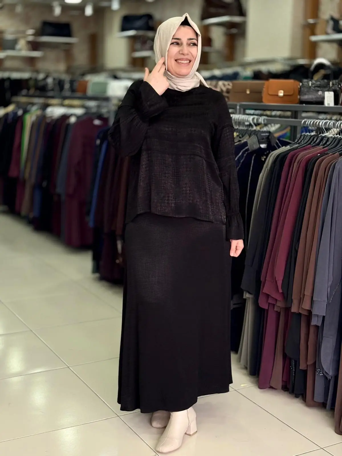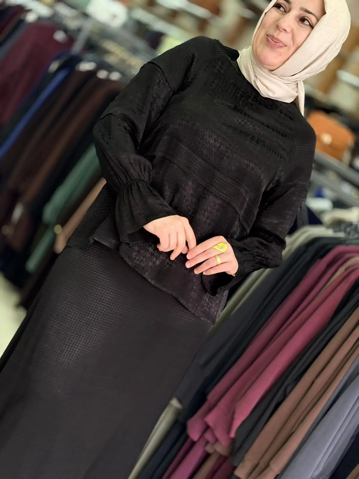 Merihce Tekstil olarak sizlere sunduğumuz DEFRİNA KAZAAYAĞI DESENLİ TAKIM SİYAH, kaliteli malzemelerden üretilmiş olup, şıklığı ve rahatlığı bir araya getiriyor. Giyim tercihlerinizi tamamlayacak bu özel tasarım, her ortamda zarif bir görünüm sunmanızı sağlar.