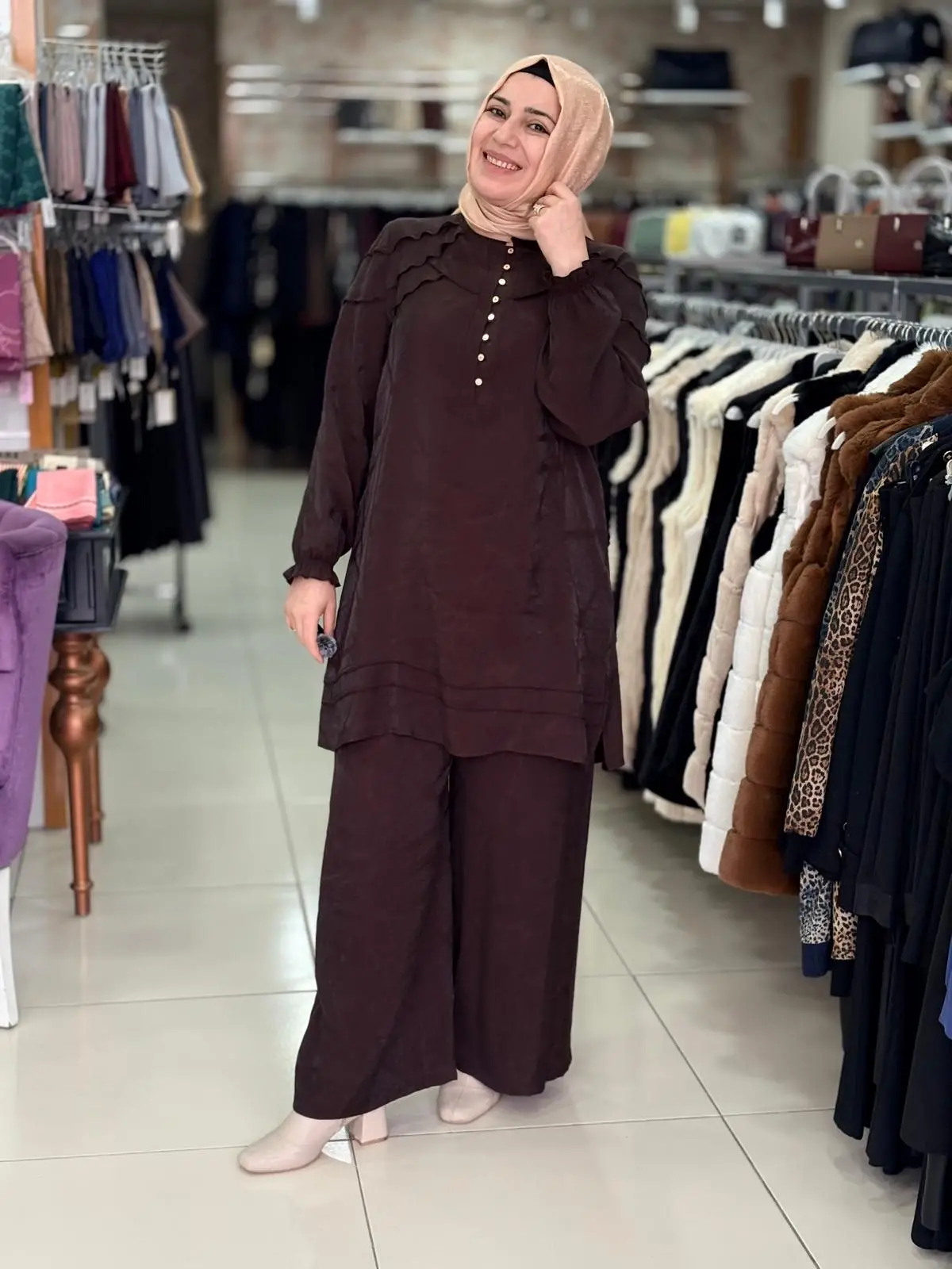 Merihce Tekstil olarak sizlere sunduğumuz DEFRİNA OVERLOK DİKİŞLİ TAKIM KAHVERENGİ, kaliteli malzemelerden üretilmiş olup, şıklığı ve rahatlığı bir araya getiriyor. Giyim tercihlerinizi tamamlayacak bu özel tasarım, her ortamda zarif bir görünüm sunmanızı sağlar.