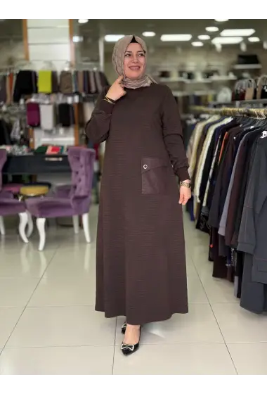 DEFRİNA WP DETAYLI CAKARLI ELBİSE KAHVERENGİ