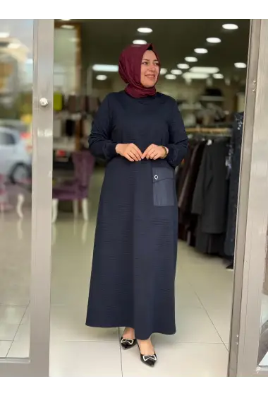 DEFRİNA BEL K.DERİ VE DESENLİ KOMBİ ELBİSE LACİVERT