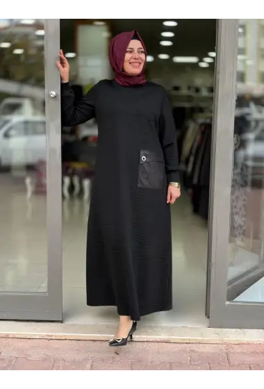 DEFRİNA BEL K.DERİ VE DESENLİ KOMBİ ELBİSE SİYAH