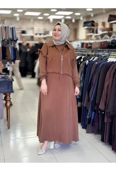 OFELİA CEKETLİ ELBİSE TAKIM KAHVERENGİ