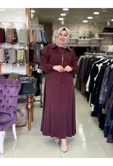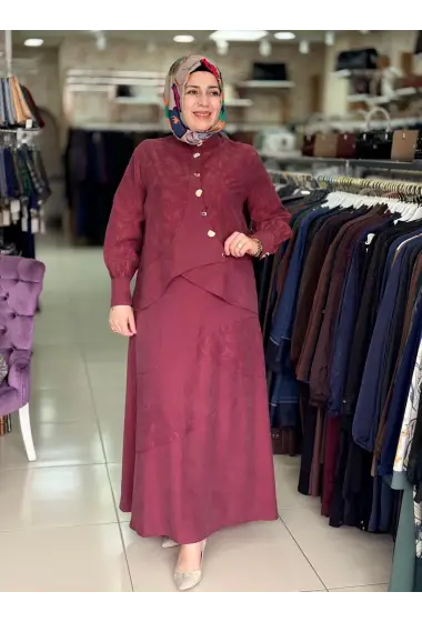 MEVA PLUS JAKAR TENCEL ELBİSE CEKET TAKIM Bordo