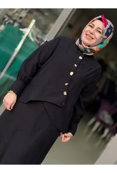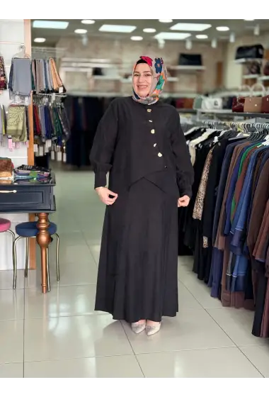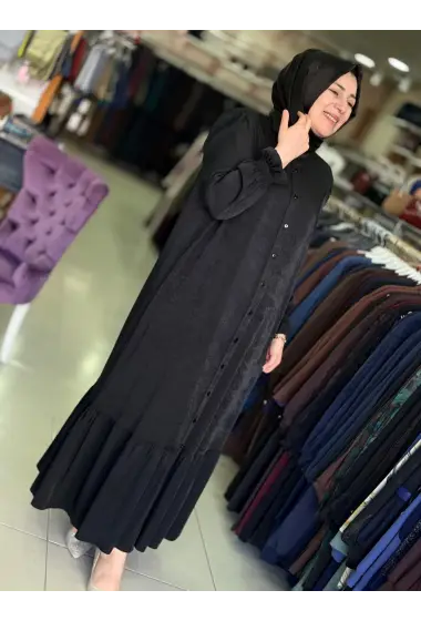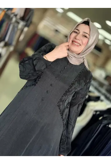 JUKİ ÖNÜ DÜĞMELİ ELBİSE SİYAH