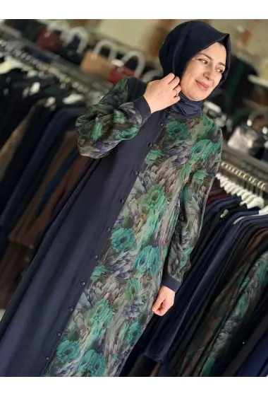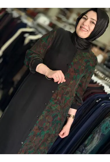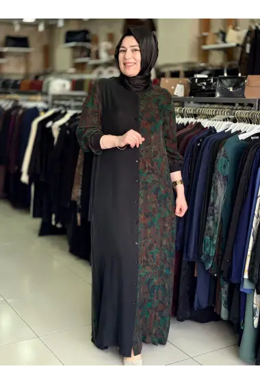 JUKİ ÖNÜ DÜĞMELİ ELBİSE YEŞİL