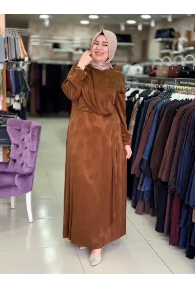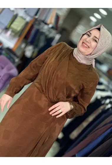 DEFRİNA RENKLİ İPEK CUPRO ELBİSE TOPRAK