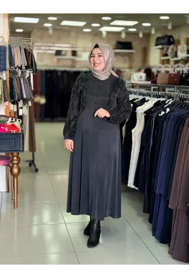 MEVA PLUS JAKAR TENCEL ELBİSE CEKET TAKIM ANTRASİT