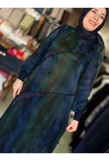 DEFRİNA RENKLİ İPEK CUPRO ELBİSE MAVİ