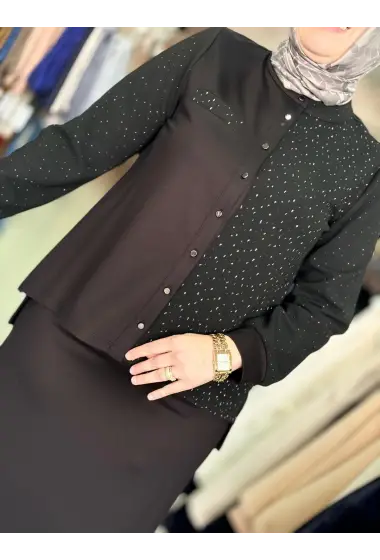 BAMBU MODEL CEKET VE ETEK TAKIMM SİYAH