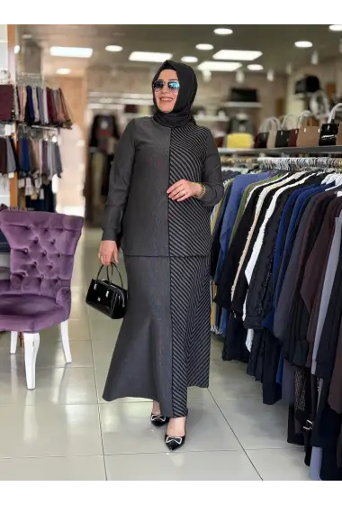 AYLİN TRİKO SİM DETAYLI ETEKLİ TAKIM GRİ