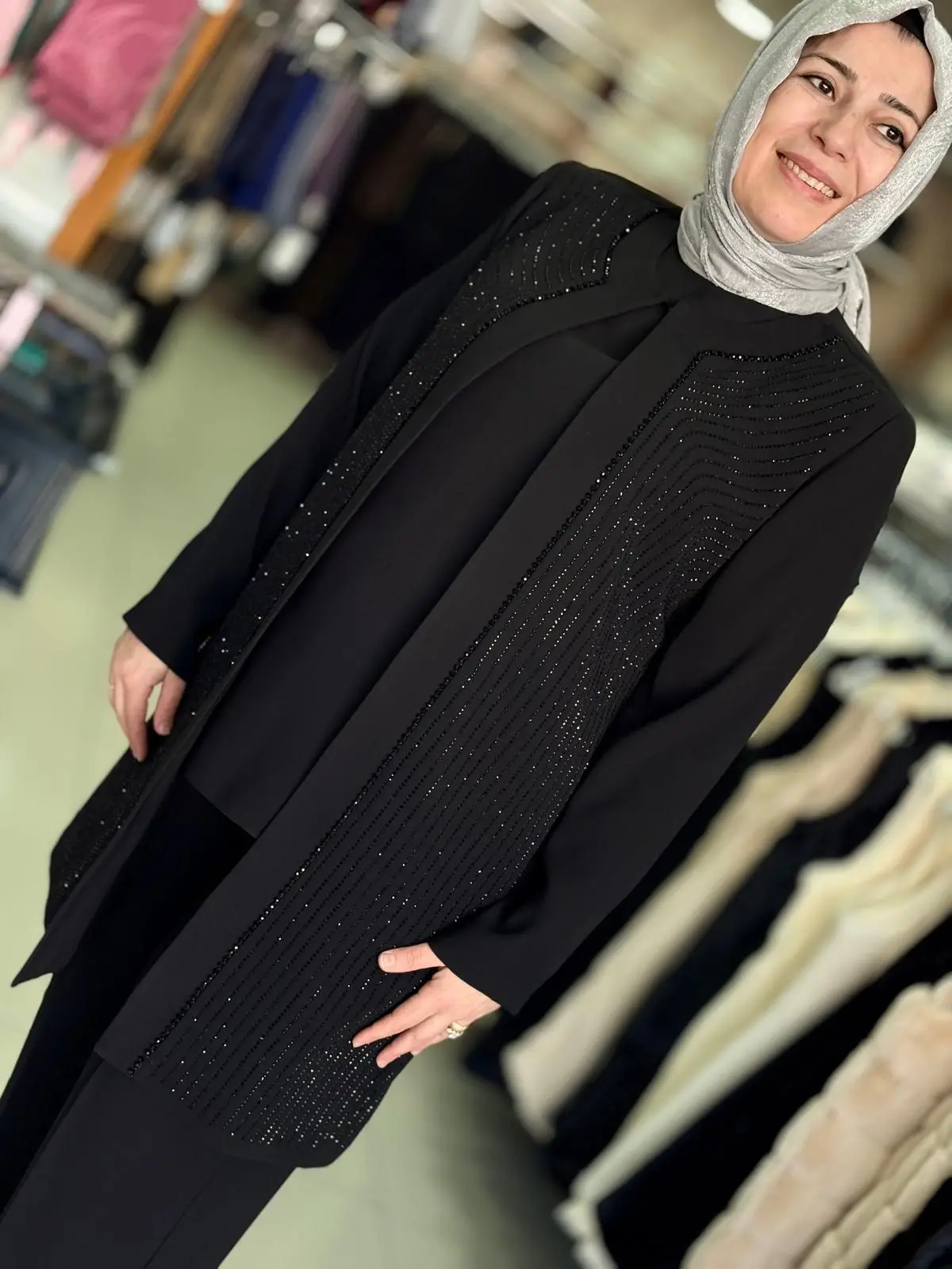 Merihce Tekstil olarak sizlere sunduğumuz GRİMİSS CEKETİ TAŞ İŞLEMELİ ŞIK TAKIM SİYAH, kaliteli malzemelerden üretilmiş olup, şıklığı ve rahatlığı bir araya getiriyor. Giyim tercihlerinizi tamamlayacak bu özel tasarım, her ortamda zarif bir görünüm sunmanızı sağlar.
