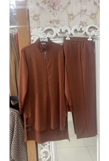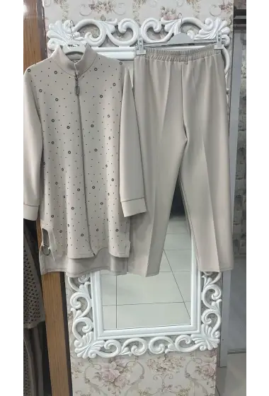 AYLİN TRİKO SİM DETAYLI ETEKLİ TAKIM GRİ