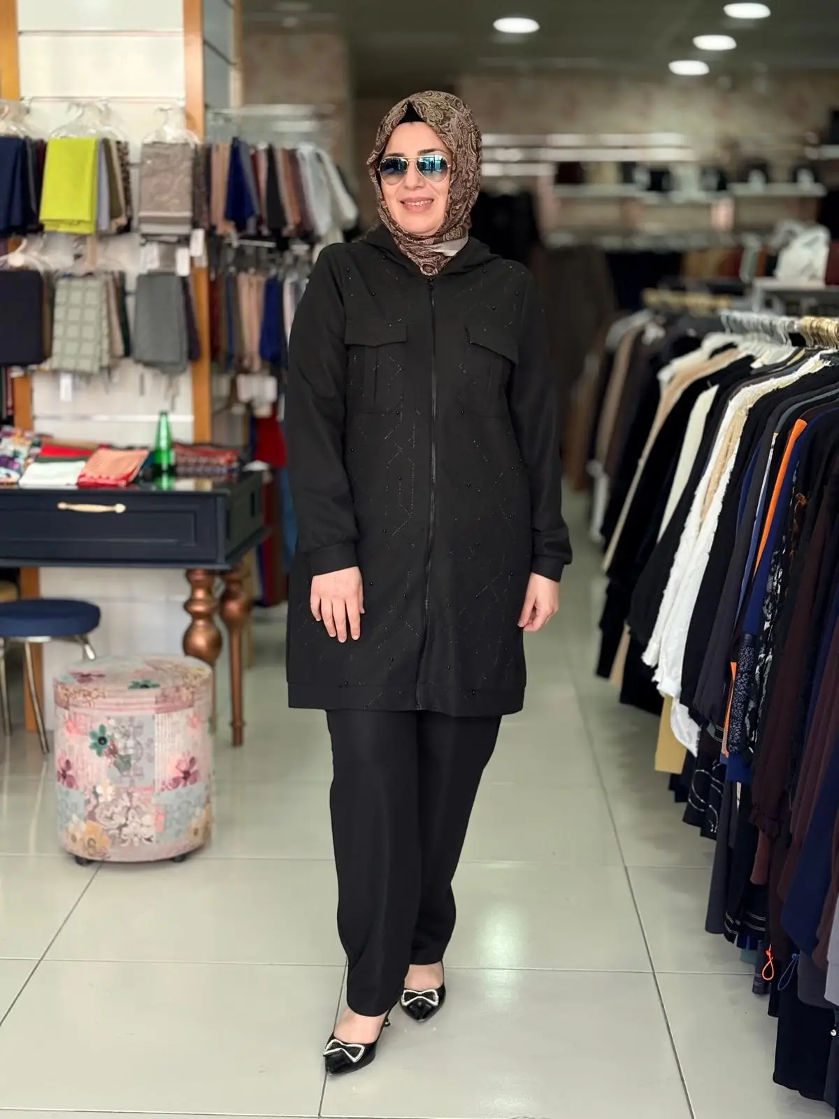 İTHAL TAŞLI TUNİK PANTOLON TAKIM SİYAH