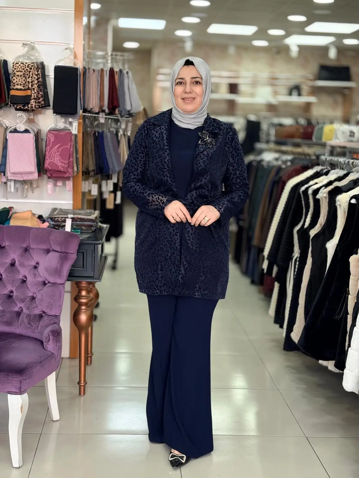 KADİFE DETAYLI ŞIK 3 LÜ TAKIM LACİVERT