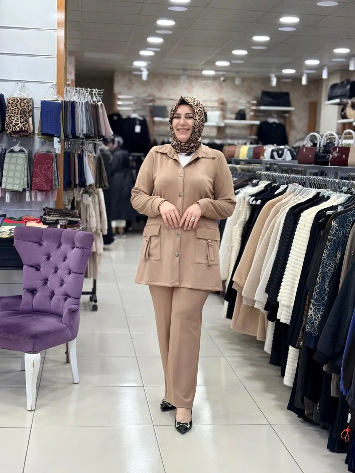 Merihce Tekstil olarak sizlere sunduğumuz LİVZA CEPLİ CEKET TAKIM Camel, kaliteli malzemelerden üretilmiş olup, şıklığı ve rahatlığı bir araya getiriyor. Giyim tercihlerinizi tamamlayacak bu özel tasarım, her ortamda zarif bir görünüm sunmanızı sağlar.
