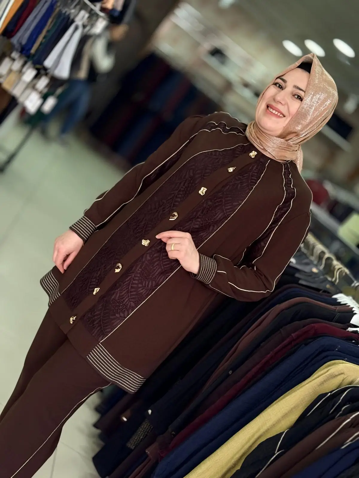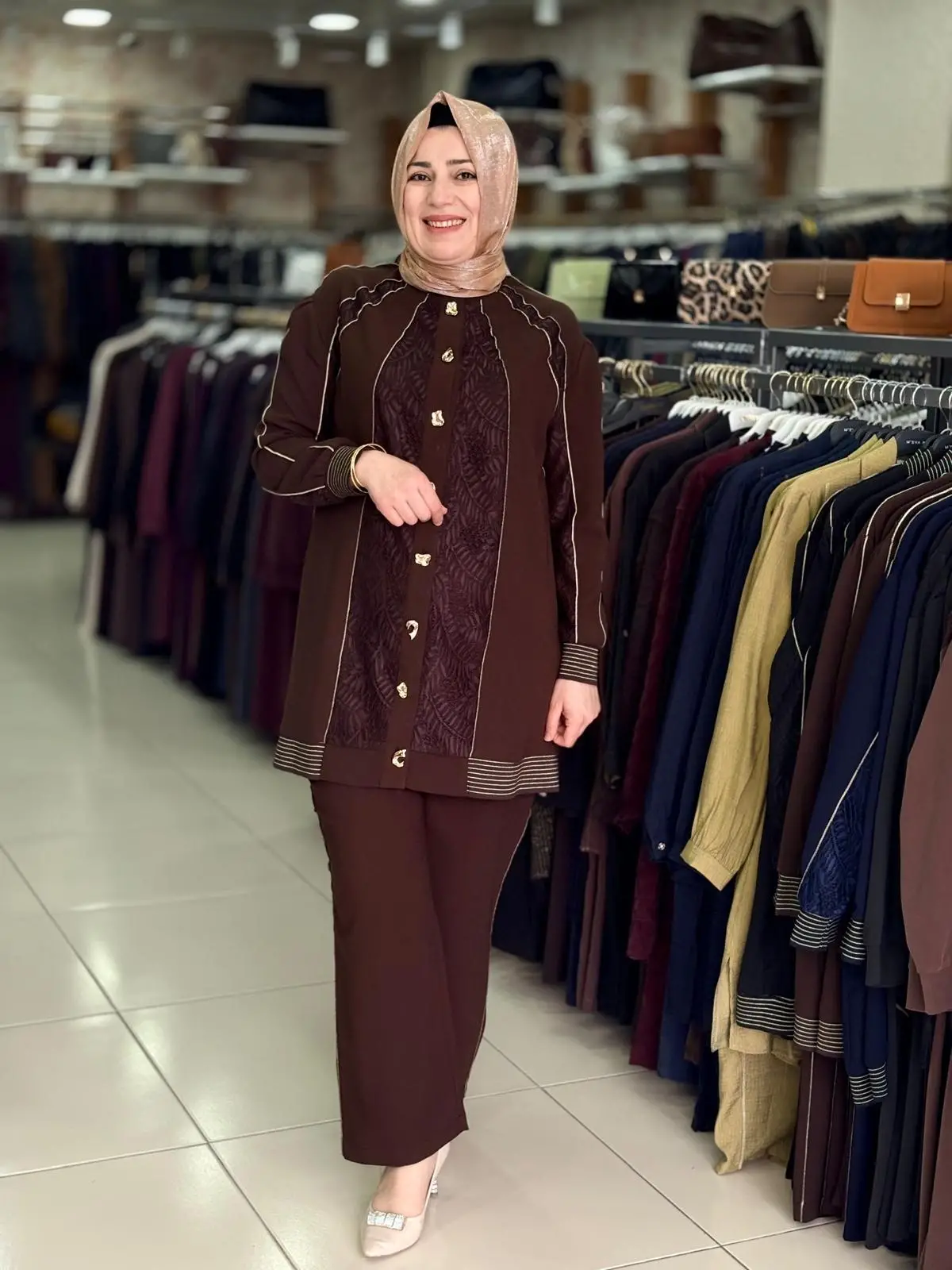 MEVAPLUS DANTEL KOMBİNLİ TAKIM KAHVERENGİ