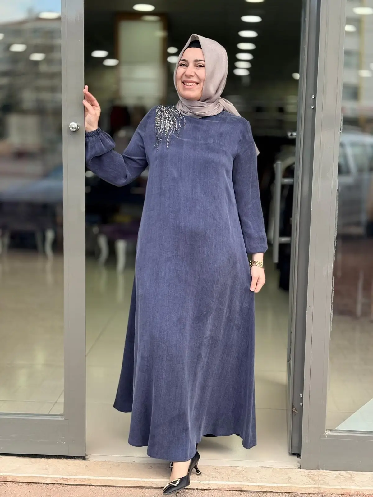 Merihce Tekstil olarak sizlere sunduğumuz OFELİA TAŞ DETAYLI İPEK CUPRA ELBİSE LACİVERT, kaliteli malzemelerden üretilmiş olup, şıklığı ve rahatlığı bir araya getiriyor. Giyim tercihlerinizi tamamlayacak bu özel tasarım, her ortamda zarif bir görünüm sunmanızı sağlar.