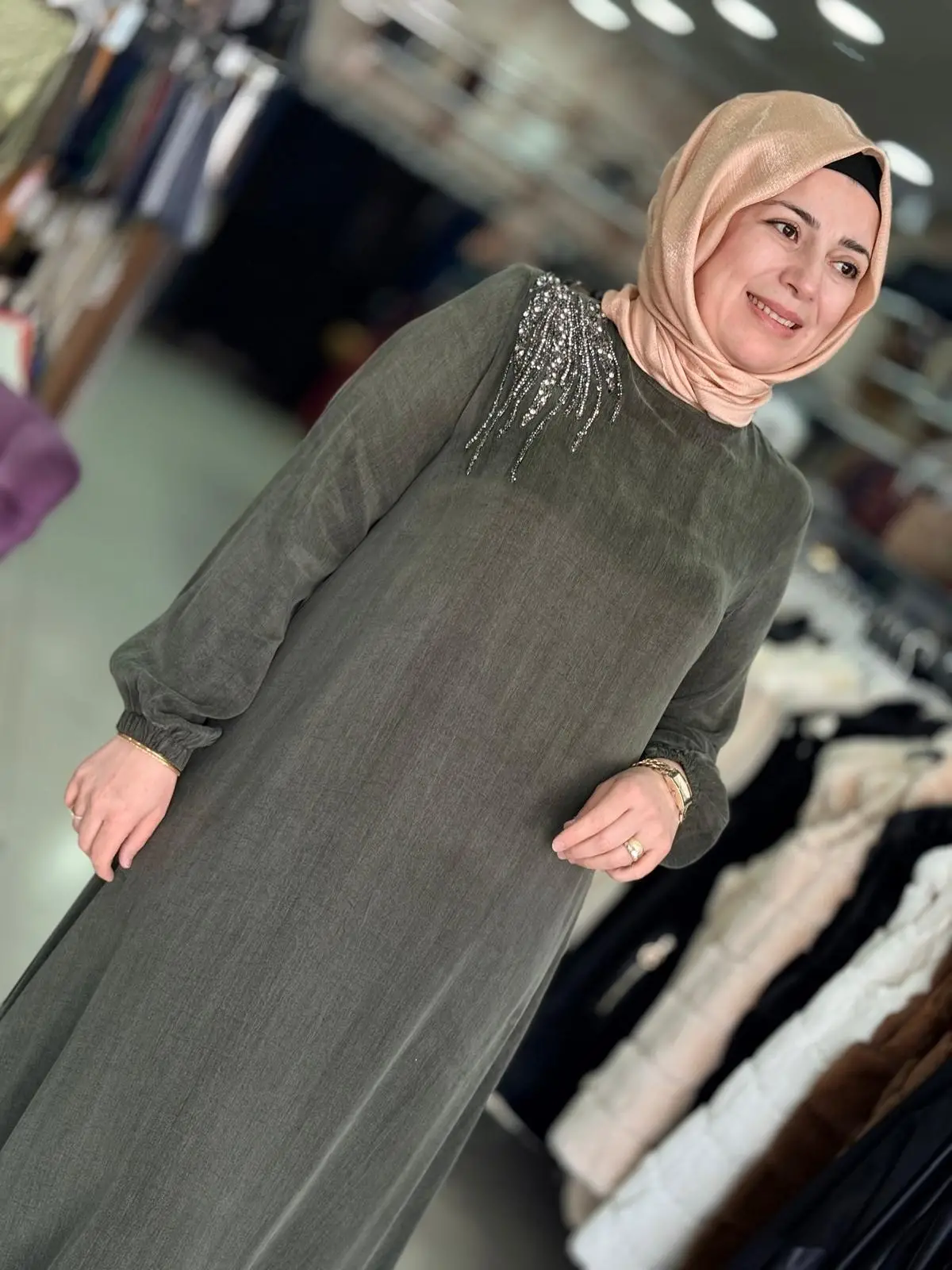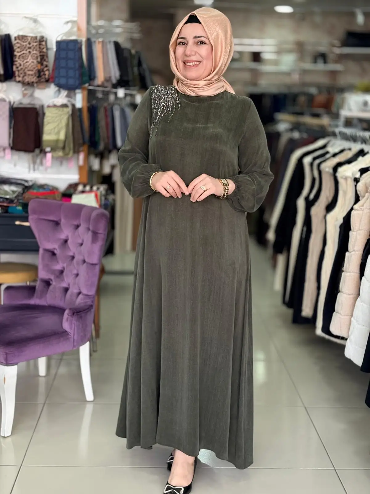 Merihce Tekstil olarak sizlere sunduğumuz OFELİA TAŞ DETAYLI İPEK CUPRA ELBİSE YEŞİL, kaliteli malzemelerden üretilmiş olup, şıklığı ve rahatlığı bir araya getiriyor. Giyim tercihlerinizi tamamlayacak bu özel tasarım, her ortamda zarif bir görünüm sunmanızı sağlar.