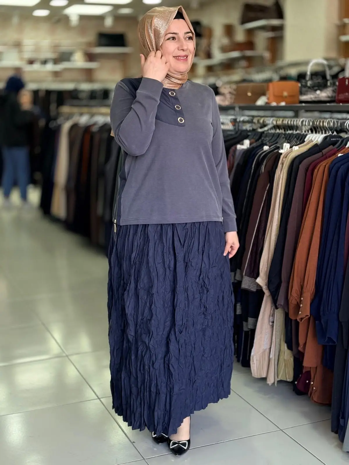 Merihce Tekstil olarak sizlere sunduğumuz PUREVA TUNİK PLİSE ETEK TAKIM LACİVERT, kaliteli malzemelerden üretilmiş olup, şıklığı ve rahatlığı bir araya getiriyor. Giyim tercihlerinizi tamamlayacak bu özel tasarım, her ortamda zarif bir görünüm sunmanızı sağlar.