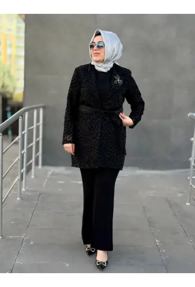 KADİFE DETAYLI ŞIK 3 LÜ TAKIM SİYAH