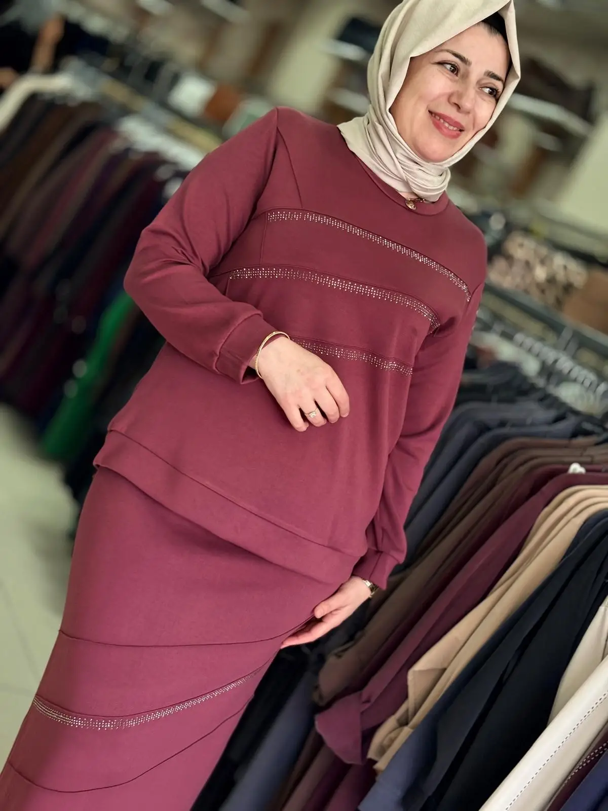 Merihce Tekstil olarak sizlere sunduğumuz ZEMRAM TAŞLI ETEKLİ TAKIM Bordo, kaliteli malzemelerden üretilmiş olup, şıklığı ve rahatlığı bir araya getiriyor. Giyim tercihlerinizi tamamlayacak bu özel tasarım, her ortamda zarif bir görünüm sunmanızı sağlar.